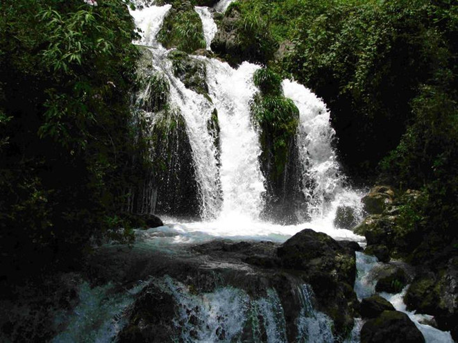 渐渐地,由摇指转为弹拨,由高音区转向低音区,声势未减而速度已缓,似有种巍峨雄伟之感。果然,走过那凌霄瀑布,视野渐渐开阔,水流渐缓而不失活力的潺潺,只是两岸不再是茂密的树林,而是一座座挺拔俊秀的高山。黄中裹绿的山顶,似一条巨龙抱起碧波大海。极目远望,有的绵延千里,气吞山河;有的嶙峋耸立,直指苍穹......
